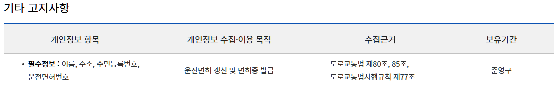 이 과정에서 주민등록번호, 기존 면허번호, 연락처, 배송지 주소 등을 입력해야 하며, 갱신 수수료(8,000원)를 납부하면 신청이 완료됩니다.